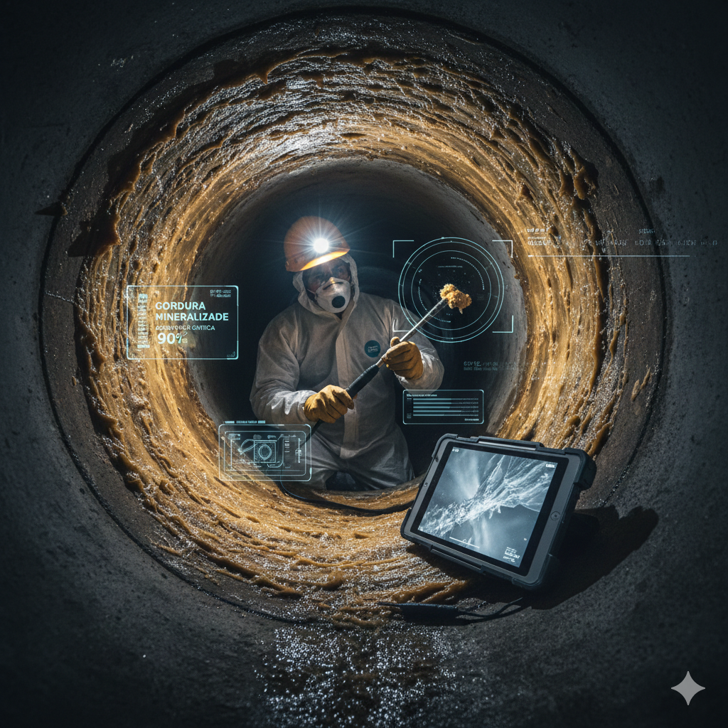 Visto que muitos edifícios recém entregues possuem resíduos de construção (cimento e areia), qualquer descarte de gordura acelera a formação de bloqueios. Portanto, realizamos a limpeza técnica preventiva para garantir que o sistema opere conforme o projeto de engenharia original, evitando refluxos em unidades térreas.
