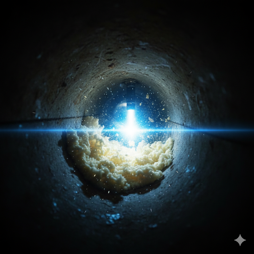 Geralmente, métodos amadores apenas criam um pequeno orifício no centro da obstrução. Visto que a crosta de gordura nas paredes do cano permanece intacta, novos resíduos se prendem rapidamente a essa rugosidade. Portanto, apenas a retífica interna via mini-hidrojateamento garante uma solução definitiva para o escoamento.
