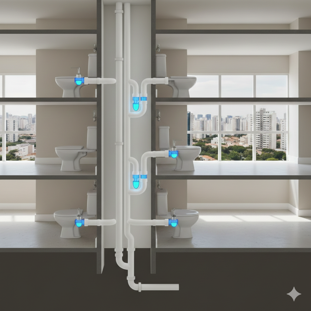 A reabilitação de sistemas sanitários em Guarulhos exige o restabelecimento do fluxo por gravidade e a preservação do fecho hídrico contra o retorno de gases tóxicos.