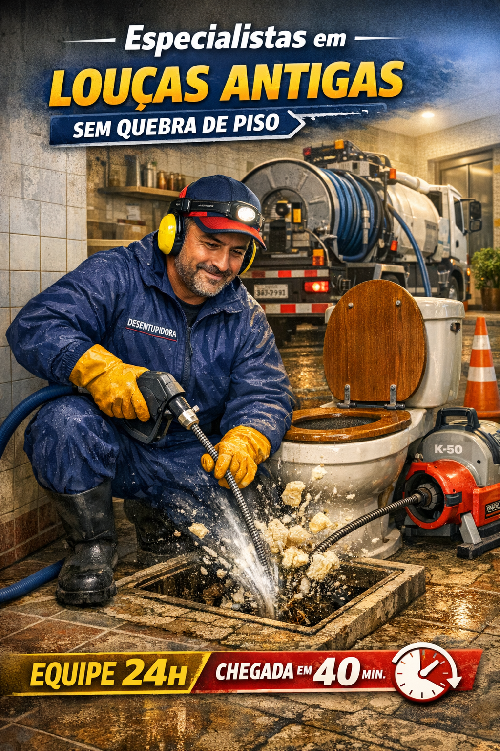 Desentupimento de vaso em Presidente Altino, Osasco. Louças antigas preservadas, sem quebra de piso. Equipe 24h, 40 min.